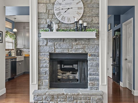 Double sided fireplaceStone homeLarge walk in closetHuge primary bedroomEn suite bathroomSoaking tub