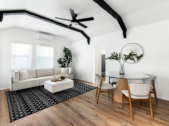 A fully remodeled 1930s Spanish style boutique property, conveniently located near Culver City and the 10 freeway. West Adams now boasts the soon opening Maydan Market and other destinations like Highly Likely Cafe and Mizlala. This upper level unit has vaulted & beamed living room ceilings, offering old world charm in a reimagined contemporary setting. All apartment units designed by in house architect featuring vintage kitchen back splash, colorful lower kitchen cabinets, tucked away in-unit washer/dryer, bright bathrooms, and new flooring throughout. Large living room area allows for both TV and dinning/work from home space. Enjoy cooling and heating by remote controlled mini split. Just a couple minutes stroll to the Expo light rail line. The Somerset is not just a place to live, but the large outdoor recreation and garden space offers a sense of community.
