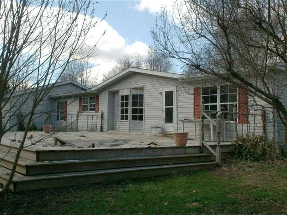 DO NOT ENTER PROPERTY WITHOUT APPOINTMENT. This is a private lender land contract foreclosure being sold as is. Seller will begin accepting offers after property has been in the MLS for 3 business days (on 04/22/2014) Manufactured home with 1512 sq ft up on a full walk out basement on 17 acres heavily wooded and rolling with numerous trails. Property may be 203k compliant buyers should check with their lender. 3 large bedrooms including master suite, 2 full baths, large living area w/fireplace, formal dining, big kitchen and huge enclosed porch overlooking the 17 acres. Gazebo with hot tub (non operational), 672 sq foot attached garage AND huge 24x26 shed. Great structure, needs cosmetic restoration.