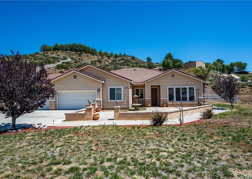 Located on a private & tranquil lot in Acton is this highly sought after one level ranch style home. Boasting 5 beds/2.5 baths, this peaceful family home was made w entertaining in mind. The long driveway provides ample parking & leads to a 3-car garage, RV parking & is completed by a welcoming & charming courtyard. Upon entry of this sun-drenched home, you are welcomed by a formal living rm & dining rm that leads to an open concept kitchen & living space that is perfect for entertaining. This creates the perfect blend of traditional & modern floor plans! The kitchen offers a double oven, walk in pantry & over-sized island that overlooks the family rm which features a ceiling fan ideal for cooling in the summer & a real wood burning fireplace which keeps things cozy in the winter. Hardwood floors & recessed lighting are throughout these common areas. You'll love waking up every morning in the open & light-filled master bedrm that features a fireplace, ceiling fan & double doors that open to the beautiful backyard. The master bath provides access to the walk-in closet & is truly complete w his & her sinks, a spa tub & separate shower. The entertaining continues outdoors as the ample backyard, surrounded by picturesque mountain views, can be accessed through the kitchen or master. Expanding the length of the home is a covered patio that overlooks the refreshing & inviting pool, built-in bar & pergola covered fireplace. This home is truly one of a kind.