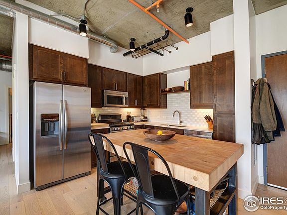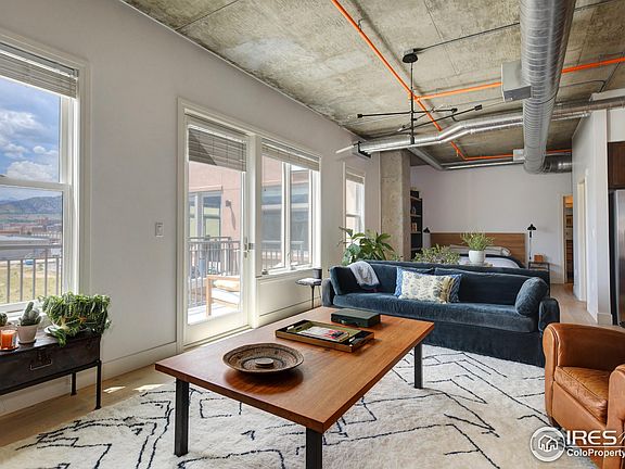 Unit 419 is a west facing top floor loft in the Peloton. Measuring 975 square feet, this unit is larger than many of the true one bed units in the complex and could easily be converted into a true one bed. There are unobstructed views from South Boulder Peak and the Flatirons, all the way to Arapahoe Peak. The unit features exposed concrete ceilings, SS appliances, and white oak engineered flooring. The current owner performed a compete bathroom renovation in 2021, replacing the tub/shower with a walk-in glass shower and installing a custom white oak vanity with RH fixtures throughout. Owner amenities include secure underground parking, year round heated rooftop pool/hot tub, fitness center, community center, screening room, and onsite restaurants (Basta, Naked Lunch, and Dry Storage). Unit 419 has a deeded underground parking spot and nearby 34 sf storage unit. Showings Start Saturday Sept 10. Please book in Showing Time.