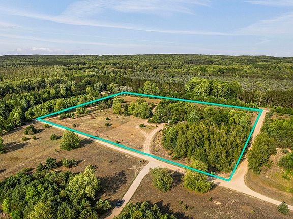Unique, one-of-a-kind custom home on 10 wooded acres. Built with sustainability in mind, this home offers 7 ½” insulated walls and concrete floors with in-floor heat paired with an on-demand water heater. If it gets a little warm in the summer, kick on the mini-split AC for instant whole-house cooling. Huge, 30x40 heated, insulated garage holds all the toys and provide tons of storage. Additional storage can be found in the second story. Also, there is 2 extra storage units and a chicken coop (complete with chickens if wanted). Even an RV hookup for out-of-town guests! Home features include: Primary bedroom suite with full-tile roll-in shower, large walk-in closet, custom lighting throughout, blue-tooth fans, custom kitchen with double oven and so much more….see attached documents for full list of features. Location is the key here – snowmobile trails, state land, Crystal Mountain, St Ambrose Cellars, Iron Fish Distillery, and the list goes on! This home would make a perfect up-north getaway! **Property is actually (2) 5 acre parcels and could be separated if the new owner desires.