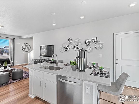 The Shire, Modern Living in Thompson River Ranch: Take advantage of Flex Cash using Preferred Lender! *Restrictions apply, see sales counselor for details.* This 1,464 sq. ft. two-story home features 3 bedrooms, 2.5 bathrooms, and a 2-car garage, designed to fit your lifestyle perfectly. Step inside to an inviting foyer that leads to an open concept living area and kitchen designed for connection and convenience. The kitchen is a chef's dream, featuring an eat-in island, stainless steel appliances, ample cabinet space, a walk-in pantry, and abundant natural light streaming through the many windows, creating a bright and airy atmosphere. Upstairs, the spacious primary suite becomes your private retreat, complete with a dual-sink vanity, walk-in shower, and generous walk-in closet. Imagine unwinding here after a long day, with plenty of room for your personal sanctuary. Two additional bedrooms share a Jack-and-Jill bathroom. The conveniently located upstairs laundry room eliminates the hassle of carrying loads up and down the stairs. Step outside to enjoy the fenced yard, featuring an expanded concrete patio ideal for entertaining, letting kids and pets play freely, or hosting outdoor festivities. The two-car garage provides extra storage for your seasonal items, tools, or hobby equipment. The actual home may differ from the artist's renderings or photographs. Thompson River Ranch offers everything you need for an active and fulfilling lifestyle. Enjoy two sparkling pools, a state-of-the-art fitness center, walking trails, lush parks, and a disc golf course. With an outstanding school just steps away. With 1,464 sq. ft. of thoughtfully designed living space, this home offers everything you need for a comfortable, modern lifestyle. Schedule your tour today and see how The Shire can become your dream home!