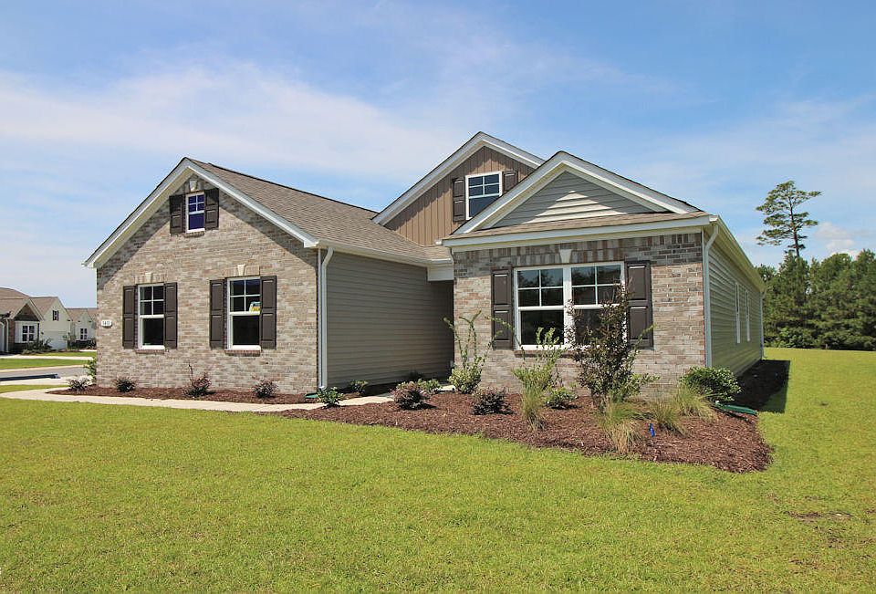Great Bluffton plan with Brick front & rear covered porch on corner lot. Side entry garage with 4'extension on large lot. Coffered ceiling in foyer. Ceramic tile in laundry & baths. Hardwood in foyer, family & kitchen. Kitchen with lots of 36'' staggered cabinets, with mosaic backsplash, huge granite island & countertops, pantry, recessed lighting and pendants over island. Frigidaire stainless appliances. Awesome large master suite with tray ceiling, huge WIC, bath with separate sinks, 5' walk in shower. HOA includes amenities, lap & zero entry outdoor pool, tennis courts, shuffle board, fitness center, irrigation and all lawn maintenance. Minutes to Sunset Beach, golf courses and heart of Calabash. Other model homes under construction or choose lot and build new.Over a dozen floor plan