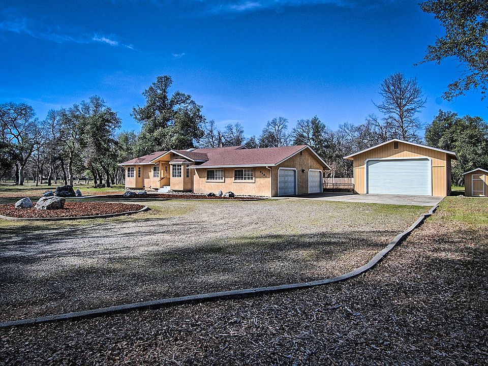 Don't miss out on 4+ acres of flat land, perfect for horses and other livestock with endless possibilities. This property features an oversized two car garage with a half bath, huge detached shop and updated landscaping! Relax and enjoy your morning coffee on your brand new deck while admiring the forest-like backyard and abundant wildlife nearby. This 2 bed 2 bath home features a den, which could easily become a 3rd bedroom, and many upgrades include a beautifully landscaped backyard, fencing around the perimeter, newer A/C and ducting, new carpet and paint, damaged tree removal, and a large generator to keep the electricity and water running during a power outage.