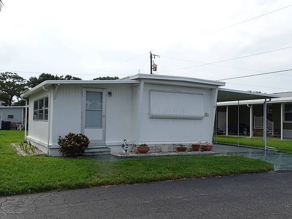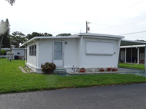This unit is in Waterside mobile home park a 55 plus community an a highly sought-after park with lots of activities.The park has a beautiful Clubhouse and a pool, wonderful friendly people come make this your home. The home features a nice size lot, the carport that will accommodate two cars with ease and has a storage shed. The kitchen is brightly painted has lots of cabinets has a built-in pantry closet. And nice new wood laminate flooring, comes with refrigerator stove and microwave. The living room is very inviting has lots of Windows for that natural Florida sun it has been painted a corn silk color, with nice light gray industrial carpet. The master room is lightly painted will accommodate a queen queen size bed with ease and has large closet with also with wood laminate flooring. The second bedroom will accommodate your guess or you can use as an office or a den. This home features a Florida room lots of windows open space for entertaining or just relaxing enjoying the evening. Come make Waterside your new home.