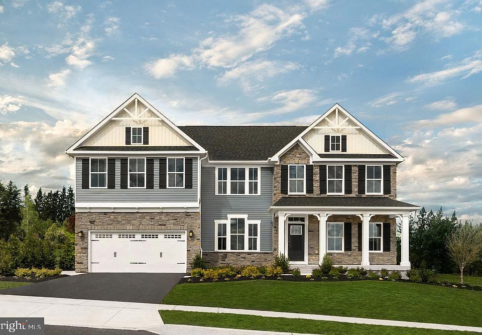 NV Homes at Penn Valley Estates offers detached estate homes. The to-be-built CORSICA has 4 bedrooms, a loft, and 2.5 baths. The primary suite has a full bath & walk-in closet; bedrooms 2 & 3 have walk-in closets. There are a bedroom-level laundry room, a gourmet kitchen with a huge island, granite countertops, a walk-in pantry, & GE stainless steel appliances; a dining area, family room, study, foyer, flex room, fully finished basement, 2-car garage, and more! Other floor plans are available. Photos are representative only.