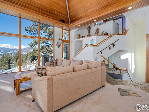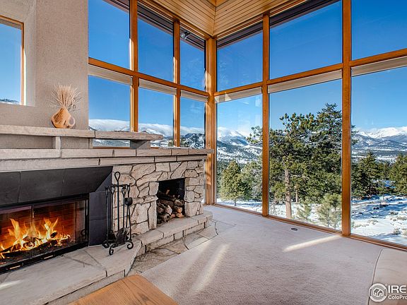 Incredible panoramic mountain views saturate the windows of this meticulously designed 3-Bedroom, 2-1/2-bath, 2+ car garage custom home. Year-round accessibility and a mountain setting like none other in the Rockies. 3,046 heated square feet, floor-to-ceiling windows, vaulted wood ceilings, low-maintenance stucco exterior, level driveway, rock courtyard under a canopy of dense aspen trees. Gently sloping 0.52 acre lot.Mere minutes from Estes Park. A truly unique mountainscape dream home!