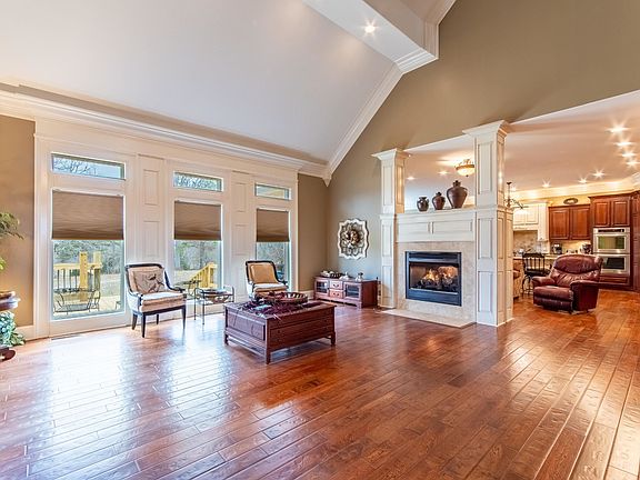 This stunning property offers over 8,500 sq ft of living space across three levels, making it perfect for two families or a large family. It includes 6 bedrooms, 5 full bathrooms, and 2 half baths. The gourmet kitchen features a large island, granite countertops, and a spacious pantry. Two luxurious primary suites provide ultimate comfort. The finished basement includes a wet bar, expansive living area, a very large safe room, and bonus rooms for versatile use. Sitting on 55.5 acres, this home provides ample privacy and room to roam. With so many exceptional features, this property is truly one-of-a-kind!