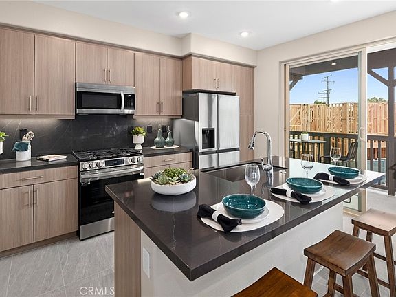 Welcome to this modern tri-level home in the Avila community! Brand new, energy efficient, Plan 1 features 2 bedrooms, 2.5 bathrooms offering 1,388 square feet of living space with attached 2 car tandem garage. Upon entering the home, you are greeted by a welcoming foyer, storage closet, and garage access. As you head upstairs, you'll find an open concept living area with a charming balcony, perfect for entertaining or enjoying the fresh breeze of air. The kitchen includes white shaker cabinets, a large island with quartz countertops and herringbone tiled backsplash, and stainless steel appliances to include a range, microwave, and dishwasher. The third level hosts two bedrooms and the laundry room. Both bedrooms include en-suite bathrooms. Centrally located to schools, shopping, and more. Easy access to the I-10 and I-605 freeways for convenient access into DTLA or OC.
