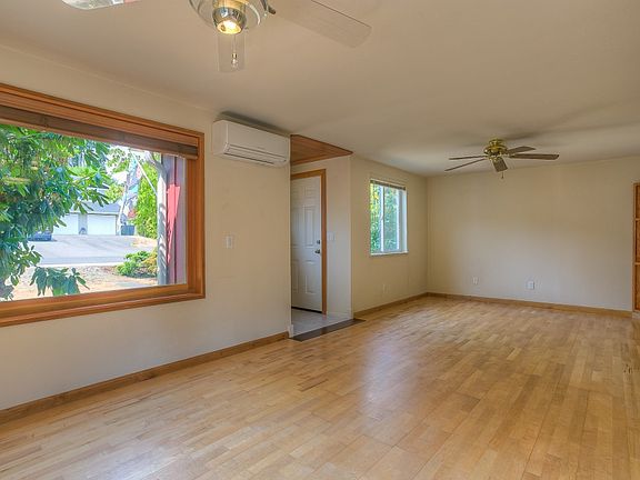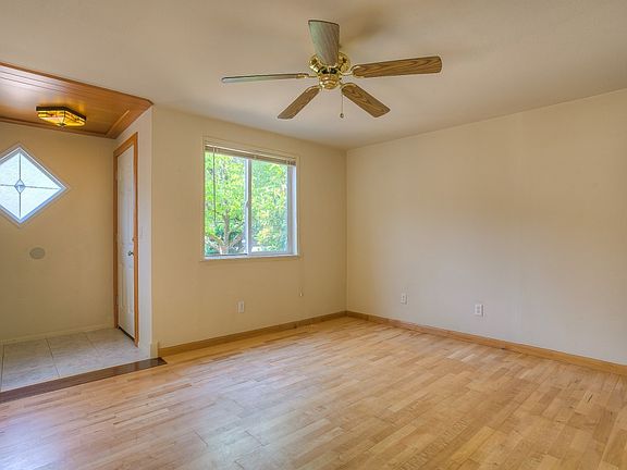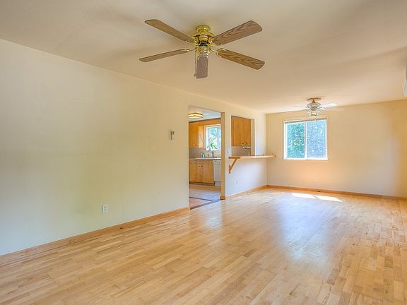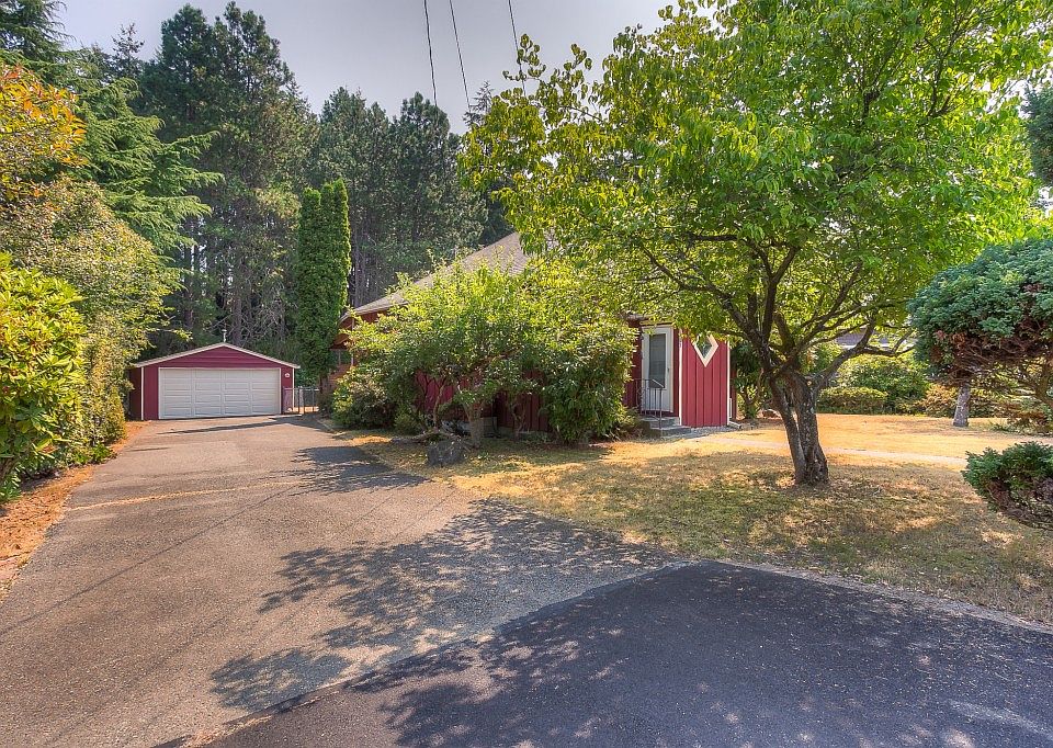 Perfect starter or investment opportunity! Adorable rambler w/hardwood flooring, updated vinyl windows, heat pump & water heater. Kitchen w/pull out pantry cabinet, new stove/micro & all appliances to include washer & dyer. 3rd room can easily convert to den/office space. Detached 2 car garage w/tons of storage, shop, fruit trees & huge covered patio perfect for entertaining. Fully fenced, private & easy to maintain backyard that backs to a lovely back drop of lush trees & natural landscapes.