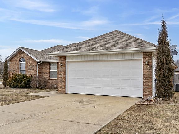 Excellent opportunity to own a corner lot property in Ozark! This 3 bed/2 bath home is move in ready and has everything you need. The front living room offers a tray ceiling and access to the back patio. The kitchen features engineered hardwood floors, stainless appliances (all included), and an attached dining space. Adjacent to the kitchen is a laundry area with access to the 2 car garage. Primary bedroom offers abundant natural light and an attached bathroom with shower/tub combo. 2 more bedrooms, one with vaulted ceilings, share a full hall bathroom. You will love the large backyard with full privacy fence and raised garden beds. Roof only 4.5 years old, and HVAC system brand new in October 2023( Trane XR 13 - 3 ton single-stage AC unit and an 80,000 BTU gas furnace, with a 10 year warranty)! Close access to Hwy CC and 65 and only minutes from restaurants and shopping. This one won't last long!