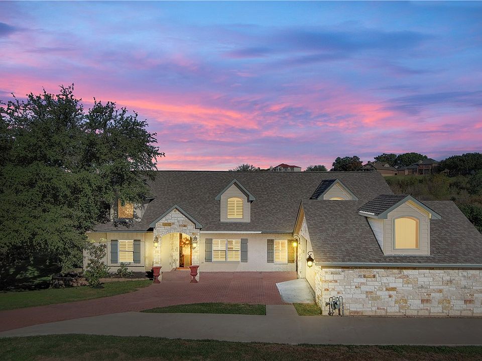 Views, views, and more views! Lake views, valley views, pond views, wildlife views, pool views, forest view. If a picture is worth a thousand words, North Ridge writes a book with the stunning showcase of nature and luxury living in this truly unique location. Experience attention to detail when you step through the 8' oak, iron and glass front door and behold 11' coffered ceilings highlighted with triple crown molding, telling you this is custom design top to bottom including the deep dark hardwood floors. The chefs kitchen features both over and under cabinet lighting, and an abundance of cabinetry, along with the Viking appliances, including the 48" gas stove with dual ovens, griddle and grill, plus separately a warming drawer and wine refrigerator, and a large pantry. The Sub-Zero refrigerator is a feature as well. The massive natural stone island is the focal point gathering family and friends in this open concept home. Take in the spectacular views of the floor to ceiling windows and 8' sliding glass doors framing the story book views, which lead out onto the 16' X 40' deck that overlooks the pond, pool, and Lake Waco. In the center of the room opposite the kitchen is a stone gas fireplace which can be enjoyed at anytime from the family, dining, and kitchen areas with a quick touch of the remote! This home is thoughtfully designed with 5 bedrooms, and 5 bathrooms, PLUS an office. There are two owners suites, one downstairs and one upstairs-both with large walk-in closets, the downstairs owners suite has two closets, both owners suites have separate bathtubs and separate showers, and both have private access to the exterior of the home and both have views of Lake Waco. There are two living areas, one downstairs and one upstairs, each of them have views of Lake Waco. Plantation shutters adorn nearly every window of the home. As wonderful as the inside of this home is, the outside shows off a mammoth deck punctuating miles of views. Indulge and take