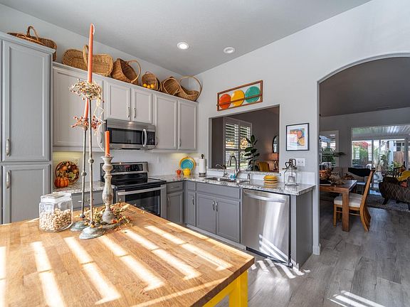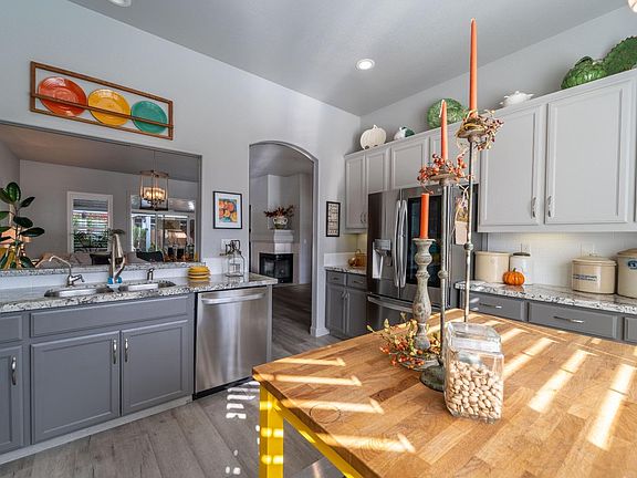 Welcome to Autumn Glen Beautiful Sought After Gated Community! Charming Well Loved Home Has Many Features Throughout. Spacious Kitchen with Granite Counters With a Great View to the Family Room and Also to the Street. Family Room Features Fireplace for Those Cozy Days and Nights. Right off the entry is your own office, or Could be the 3rd Bedroom, just add an Armoire and there you go. Down the Hall is another Bedroom, Laundry Room. Then you will Enjoy the Beautiful Primary Bedroom and Bath. Nice Size Walk in Closet and Bath has a Separate Shower and Tub. Out to the Patio and Surprise, This is a Good space too. More Bonus Features - 3 Car Garage and Just Couple Steps Down and Across the Street is the Pool! One more Bonus, There is the Community Shared RV Storage! This Could be Your New Home for the Holidays!