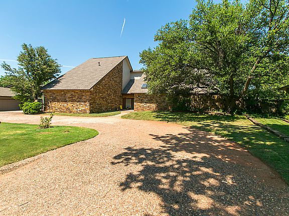 Custom Quail Creek Estate influenced with Santa Fe and Mediterranean Style. The second you step inside you will appreciate the floor to ceiling windows, natural cedar beams and an open floor plan. Two distinct oversized living spaces both feature wood burning fireplaces. The freshly painted kitchen flows seamlessly into the breakfast area, overlooking the landscaped backyard complete with pool, covered porch and stone walk ways. Your new master retreat is a true destination featuring a sitting room and a private patio providing the perfect spots for your morning coffee or unwinding after a long day. The master bathroom is infused with natural light from the skylight and has a unique sunken bathtub. A separate flex room and patio just outside the main house is perfect for an art studio or anyone working from home. With more than 1,000 sq ft of unfinished attic that could be converted into livable space, this home is a truly remarkable find in Oklahoma!