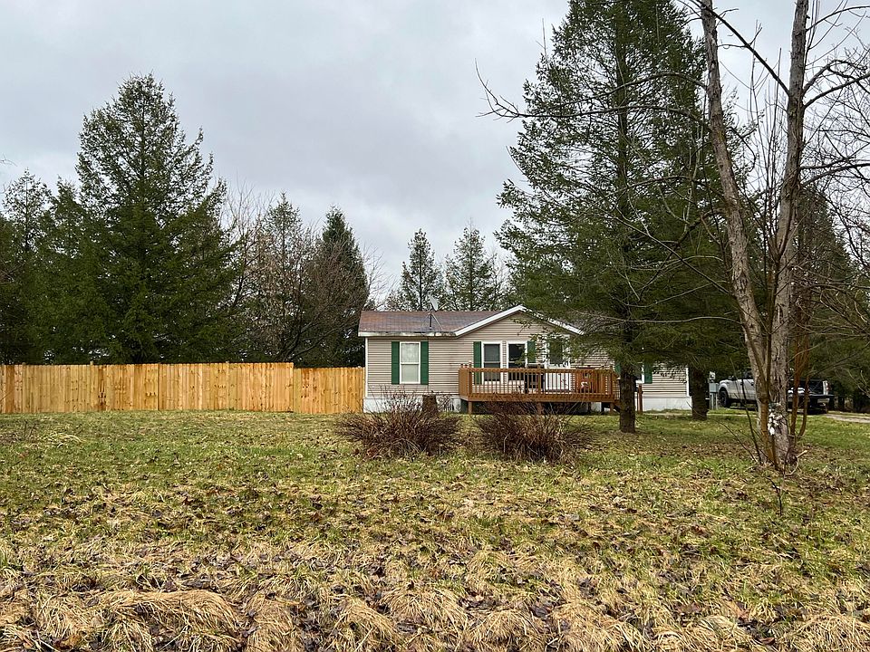 This nice homestead property offers a great country location, and not far off a paved road. Close to Montcalm Community College. 3 bedrooms which the large primary has its own bathroom. Open concept in the living room, kitchen and dining area. The back yard is fenced with a deck, shed and lots of room to run for the kids and pets. Also the property offers a side yard that has electric hook up and a fire pit for those summer bon fires with friends. Please allow a days notice to show. Immediate possession at close. Move right in.
