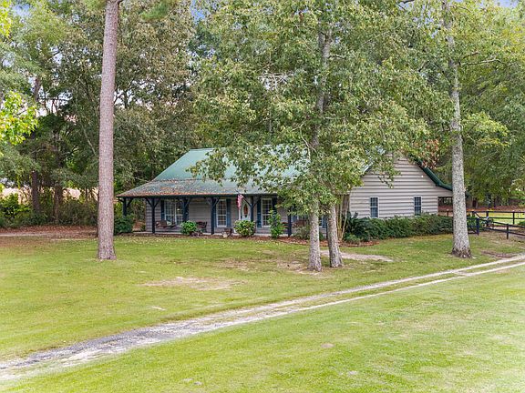 Y'all, this is that property you have been looking for. Almost 5 acres, less than two miles to Arrowhead Boat Landing on the Santee River with a beautiful home, wooded lot and a huge garage. Hunting and fishing is right outside your backdoor with approximately half the property wooded with a perfect clearing for wildlife and a .25acre portion of the pond as part of your land. The house has a semi-open floor plan that includes a huge living room with a fireplace and separates the owner's suite from the secondary bedrooms. The large kitchen has a pantry and an amazing amount of cabinets and counterspace. Off of the eat-in kitchen dining area is a large laundry room with so much space for your extra refrigerator and built-ins. Wait until you see the owner's suite.This space includes a large walk-in closet and a beautiful bathroom with a walk-in shower and separate tub. You will love the size of the two additional bedrooms with large closets and a hall bathroom. All on one level, this home has all wood flooring and tile. This country life really is about the outdoors though. A huge covered patio offers expansive views of the fenced-in garden area and the two-car garage and carports. A shed on the property has been converted into a office with its own heating/cooling system. The garage is wide open and has two carports attached making a perfect workshop. Come see what this country living is all about and enjoy all the privacy this property provides. Construction is likely a barndominium with superb construction. Outside walls are the only support areas so you can move walls around as you like from what the Seller understands.
