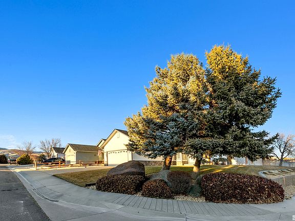 Desirable Sunridge home on a sunny landscaped corner lot with pleasing mountain views and a fresh remodel including the following: New luxury vinyl plank flooring (LVP) throughout along with new carpeting in the bedrooms, complete interior paint, new stainless appliances, new quartz counter-tops in the kitchen plus new stainless sink and faucet, new baseboards and door casings, new door and kitchen hardware and much more. This is a must see, well maintained turn key home!, All of the following are less than five years old: 40-year composition roof, 50 gallon hot water heater and forced air furnace. All this plus air conditioning and a fenced back yard.