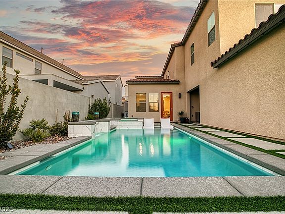 Experience luxury living in the highly sought-after Inspirada community. This just-built 2020 home boasts over 250K in upgrades.. The open floorplan & abundance of natural light make this home a must-see. Entertain in style with a large chef's kitchen featuring gorgeous quartz countertops, a waterfall island with a farmhouse sink, & a large butler's pantry. Step outside to the covered patio, courtyard, & sparkling inground pool & hot tub. The main level features a bedroom with a full bath & a half bath, while the upper level boasts a generous primary suite with a spa-like bathroom featuring double sinks, a large shower, & a separate soaking tub. The large walk-in closet offers custom-built organization. Two additional bedrooms, a convenient large laundry rm, & a spacious loft complete the second floor. Don't miss your chance to own this entertainer's dream. Schedule a viewing so see this extremely energy efficient home today!"
