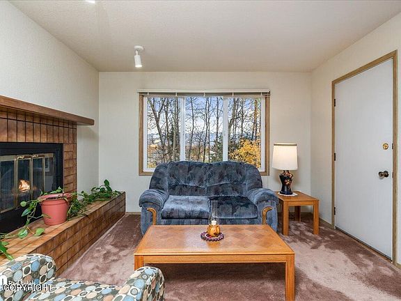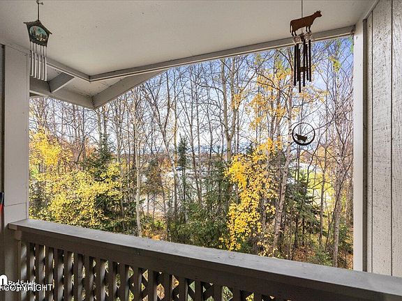 Wonderful South Anchorage top floor condo with nice treed area behind and a view of the mountains. Fantastic location near schools, Kincaid Park and the airport. Spacious kitchen with pantry, dining area, fireplace, covered deck with nice views, walk in closet in master bedroom. Covered walkways to the unit, low dues and a plug in for vehicle in the parking area.