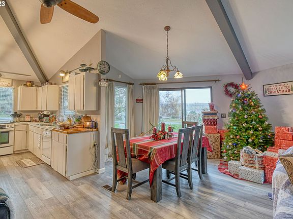 Tranquility abounds at this Hat Rock home with views of the Columbia River from a window filled living room. Open floor plan, vaulted ceilings, three bedrooms with two on-suites, mud/laundry room, large fenced yard with raised garden beds and concrete back patio. All floors have been recently replaced with LVP, fresh paint inside and newly installed black cyclone fenced back yard. Two car attached oversized garage with lots of work space. Tuff Shed with loft and a second storage building. Paved drive, underground sprinklers and a private back yard backs up to open space. Set up a time to tour this exclusive home!