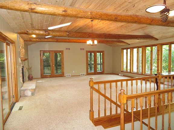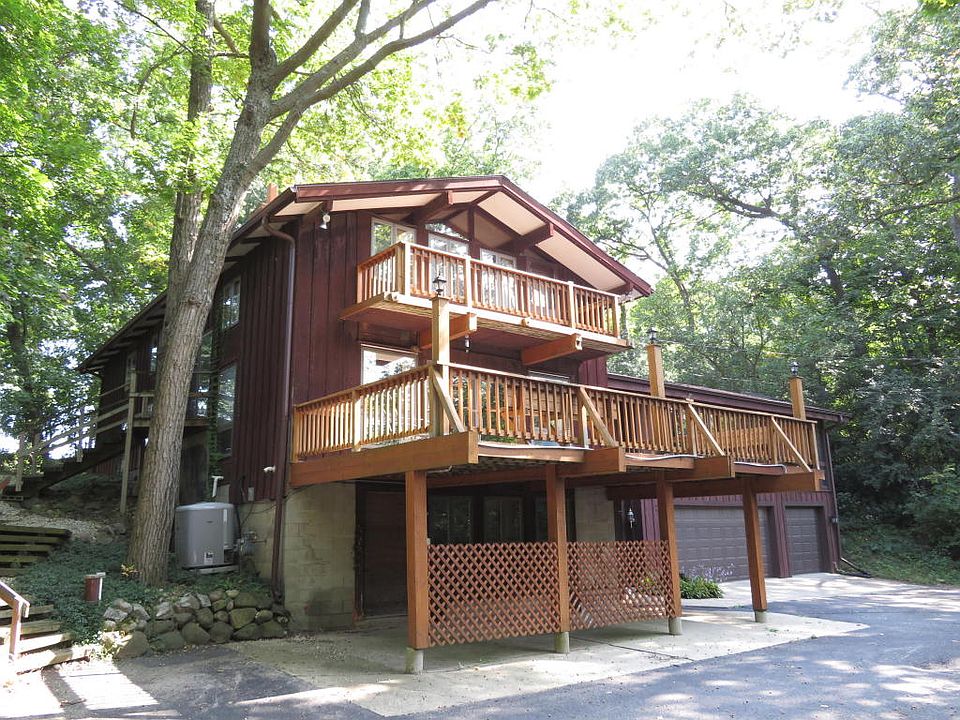 On the Kettle Moraine Scenic Drive, this open concept home hidden in your 1.5 acre forest is convenient to Delafield's Historic Dist.The kitchen adjoins a great rm. w/log beams, NFP, deck, and screened porch, Living Rm w/2nd NFP and deck+1st fl.office, laundry, full bath.The 2nd floor MBR has GFP, 2 closets, whirlpool tub. 2nd+3rd brs w/3rd bath+loft. Exposed lower LVL has a guest suite/4th br+4th full bath, w/WIC, private entry, storage+utility, 3.5 car garage. Renovated in 1998 with an addition, new windows, mechanicals, the home adjoins a conservancy protected from development and teeming with wildlife! +DELC0790998