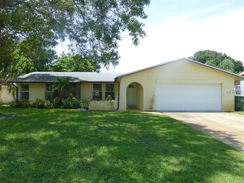Well kept family home with a split plan. Roof, A/C and garage door all new within the last 5 years. Nice floor plan with family room attached to the kitchen. Enjoy morning coffee on the screened lanai off of the family room. Large lot with plenty of room for a pool. Master bedroom has a walk-in closet and access to the garage. Light and bright with lots of windows. Great curb appeal and convenient to shopping, beaches and all the rest. This property can be approved for FHA or VA loan. Credit for carpet to be given at closing.