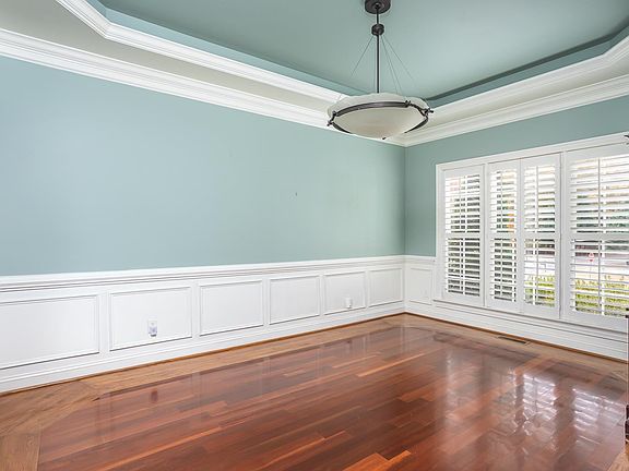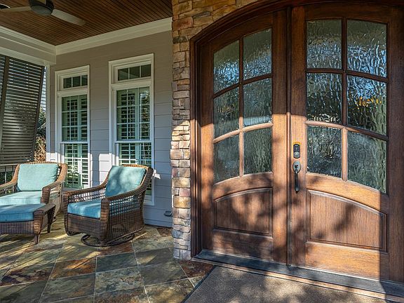 I'm beautiful inside, but first look at my super entryway and front porch with ample space for relaxing on the front porch, I was a 2007 "Parade of Homes " entry and it shows, Heavy trimwork and quality throughout. Just see my front doors-Wow! My den has gorgeous plantation shutters and coffered ceilings with a quality fireplace for those chilly Winter nights. The kitchen is superb and has a chef's oversized gas stove complete with a large center island for food prep. Spacious primary suite with an extra large double vanity and two walk-in closets. 5 total bedrooms with a tremendous theater room/ playroom on the third floor, All new painted exterior. Rear yard is fenced for children and pets.