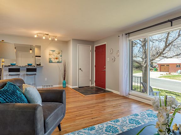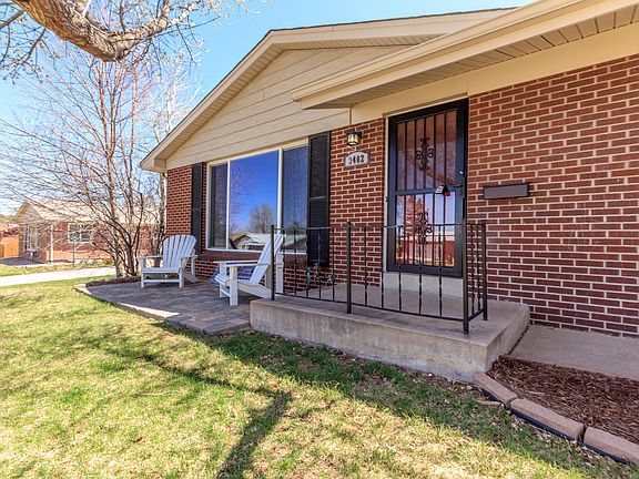 Immaculate ranch-style home in Cherry Knolls! Featuring four bedrooms, two bathrooms, newly refinished hardwood floors, and remarkable high-quality updates throughout. Accommodating floorplan offers open concept living, perfect for entertaining. The welcoming living room is open and bright, boasting a vast floor-to-ceiling window that floods the room with natural light. Updated and stunning, the dine-in kitchen is a show-stopper. Perfectly showcasing leathered granite countertops, soft-close shaker-style cabinetry with crown moulding, subway tile backsplash, stainless steel appliances, a breakfast bar with designer filament fixture pendant lighting, and gorgeous tile floors. Also encompassed on the main level are three sizable bedrooms, all with gleaming hardwood floors. The updated hall bathroom is well-appointed with modern finishes including a vanity with soft-close drawers and dual sinks, a mosaic tile accent wall, and full tile surround in the bathtub with mosaic tile inlay. Retreat to the finished basement comprised of a rec room with adjoining flex space, the fourth bedroom, and a beautifully finished bathroom with custom tile and a walk-in shower. The utility room with a built-in work bench and plentiful storage can also be found in the basement. New washer and dryer remain. Newer windows (2016) and water heater (2015). Featuring lush grass and mature trees, the backyard is a peaceful escape that includes a sizable paver patio with built-in umbrellas, a sprinkler system, a utility shed for all the tools, and plenty of room to entertain. This exceptional home is ideally located walking distance to the community pool, and close to the 24-acre Cherry Knolls Park, Big Dry Creek Trail, Highline Canal Trail, Sandburg Elementary, and the popular Streets at Southglenn with dining, shopping, and entertainment! Residents are well-served by award-winning Littleton schools. Don?t miss your chance to own a home in this wonderful, highly sought-after community!