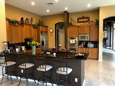Rare expanded Estrella model home by Toll Brothers situated in gated community of Aboleda. This homes sits on over 3/4 acre lot with a 4 car garage & RV gate. It features 5 beds, 3.5 baths, formal living & dining, over 4,500 sq/ft & a split-master floorplan. Open, gourmet kitchen has upgraded custom cabinets, granite countertops, stainless steel appliances, center island, large peninsula with breakfast bar & walk-in pantry. The resort-style backyard offers 2 covered patios, a built-in BBQ, flagstone decking, pebble tec pool & spa, lush grass & mature fruit trees to include tangelo, AZ sweet & navel.