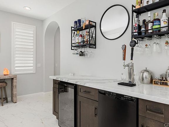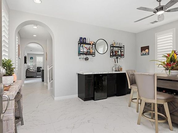 WOW! Beautifully remodeled home in the desirable neighborhood of 53 Melrose! New Italian pavers, tranquil fountain feature, and low maintenance landscape welcome you. Step inside to a freshly painted interior and new Spanish porcelain flooring downstairs. Family room features a custom marble floor to ceiling fireplace. Chef’s kitchen is perfect for entertaining, with Samsung Black Stainless Smart appliances, new farm sink, all new cabinets, Brazilian Cristallo Quartzite counters, touch Kohler stainless faucet, and large island. Front room features a new bar area with 2-tap kegerator, dual zone wine refrigerator, new cabinets, & Brazilian Cristallo Quartzite counters. All three bedrooms upstairs are en-suite with a full bathroom, plus additional loft space! Primary suite features a spa-like bath with porcelain marble floor, free standing glass & stone sinks, free standing soaking tub, frameless glass shower with custom deco mosaic floor & detail, & custom closet system. New ceiling fans in all bedrooms, dining, & family room! Downstairs powder room has new vanity, free standing sink, & new lighting. Peaceful backyard with Italian porcelain paver patio, artificial turf, fruit trees, roses, & a 5-person hot tub. 2-car attached garage with 50 amp outlet for fast EV charging, new door opening system, & extra-long driveway with ample space for parking. Nest thermostat & new 50 gal high efficiency water heater! Fantastic location with great dining, shopping, hiking trails, & North County beaches nearby!