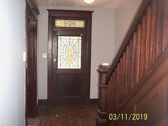 Spacious 2 story boast some very ornate features like woodwork and pocket doors large foyer and sun room! Updated furnace and roof ! Large 2 car detached garage! Just add TLC !