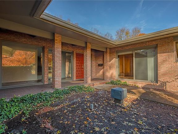 UNIQUE MID-CENTURY MODERN HOME BUILT BY WELL-KNOWN TALIVALDIS "TED" MEIJERS IN FOREST PARK ON VERY QUIET CUL-DE-SAC. LONG DRIVEWAY AND WROUGHT IRON GATED COURTYARD ENTRANCE WELCOME YOU INTO THIS BRIGHT AND CHEERY HOME WITH DRAMATIC ENTRYWAY AND AN ABUNDANCE OF NATURAL LIGHT. EXTRA LARGE LIVING ROOM HAS A BRICK FIREPLACE, VAULTED CEILING, BUILT INS AND SLIDING GLASS DOORS. KITCHEN INCLUDES DESK AREA, EATING NOOK AND HALLWAY OF FLOOR TO CEILING CUPBOARDS. DINING ROOM W/BRICK ACCENT WALL. 3 BEDROOMS, 3.5 BATHS. LARGE MASTER BEDROOM WITH 2 CLOSETS & BEAUTIFUL VIEW OF BACKYARD THROUGH THE SLIDING GLASS DOORS. LARGE UNFINISHED BASEMENT. LARGE SCREENED PORCH. A PATIO LOOKS OUT ON LOVELY LANDSCAPED BACKYARD. ENCLOSED STORAGE AREA OFF OF CARPORT.