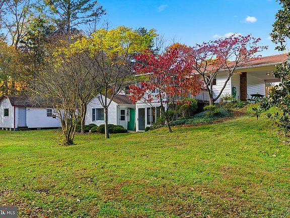 Conveniently located in Dunkirk with only three stoplights from the Washington Beltway, this all-brick rambler offers a peaceful setting with easy commuter access. The home sits on a flat, mostly clear lot with mature trees, flowering plants, and shrubs—once home to a local beekeeper for over 50 years. The property features an extra-wide driveway, 1-car carport, and a concrete front porch. A 24x12 Amish-built shed is fully insulated and equipped with heat, air conditioning, and its own electrical subpanel with outlets along all walls—ideal for a workshop, studio, or office. Additional structures include a chicken coop/storage shed and a smaller utility shed near the carport. The solar panels are owned (not leased) and help heat a secondary hot water system. Inside, the main level includes 3 bedrooms and 2 full baths, an updated kitchen with center island and newer cabinetry, a dining area, and a four-season sunroom with access to the rear deck. A large front family room and extra-wide foyer provide a spacious, open feel. The full basement is approximately 75% finished, offering a wood stove with firewood storage bins, large laundry/mechanical area, and a rear addition designed as a separate living space with a private entrance. This lower-level suite includes a dining/kitchenette area, two bedrooms (or one bedroom and den), and a full bath. A second sunroom on the lower level mirrors the one above. Additional features include oil heat, electric central A/C, solar-assisted water heating, and multiple outbuildings for storage or hobbies. Located approximately 15 minutes from Andrews Air Force Base, this property combines convenience, versatility, and rural charm in sought-after Northern Calvert County.