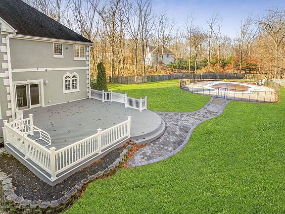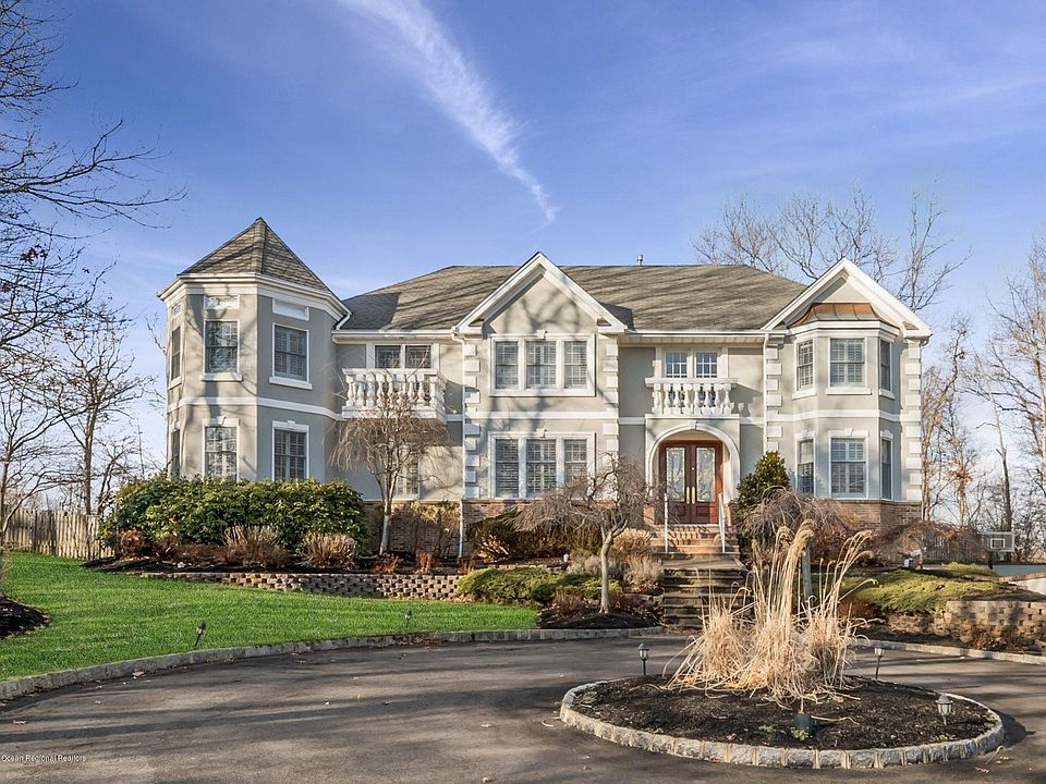 Beautiful 6BR/4.5 bath colonial home tucked privately on a cul de sac, boasting a full finished basement, 3 car garage, and inground swimming pool. This property captures the absolute best of Wall Township from its private setting on 1.38 acre lot, to its stones throw proximity to all major roads, and of course sub-10 min drive to the beach. Hardwoods run throughout, including 2 story family room w gas fireplace, formal living and dining rooms, first floor en suite with full bath, and gourmet kitchen with large center island, granite counters, SS appliances. Retreat upstairs to large master suite with recently renovated master bath, large walk in closets, and private balcony. Finished basement with full bath. Brand new stucco exterior, brand new trex deck, concrete pool.