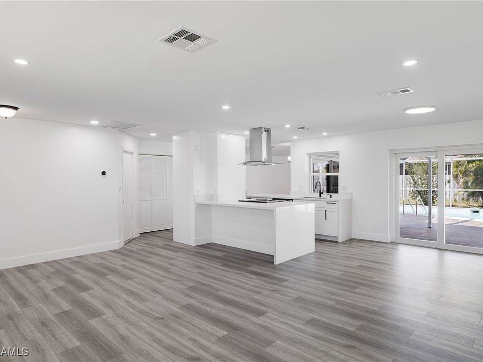 Great opportunity to have a home close to the water while remaining in Flood Zone X, allowing peace of mind. This property has been recently updated with modern fixtures, sleek details, and luxurious finishes. The updated kitchen features soft close white shaker drawers and cabinets, stone waterfall counters, and stainless steel appliances. Natural light throughout the home looks beautiful during the day, while canless recessed lighting brightens up the night. Luxury Vinyl flooring throughout the home and 36 inch tiles in bathrooms! Entertain while cooking with this new open layout and host an outdoor dinner in the shade on your covered lanai. Step out from your primary bedroom through sliding glass doors to enjoy a cold beverage while soaking up the sun in your screened in pool. This property is centrally located, just a short walk to Del Prado which holds entertainment, restaurants, retail, and more. Bring your boat to Horton Park & Boat Ramp, just 3 miles away to enjoy a day on the Caloosahatchee that leads to the beautiful beaches SWFL has to offer. Parks nearby include Jaycee Park, Four Mile Cove Ecological Preserve Trail, and Bernice Braden Park. Enjoy a night out downtown just minutes away from endless fun on SE 47th Terrace. This home's convenient location and updates are hard to pass up, book your showing before it's gone!