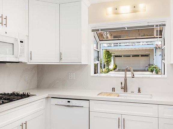 Amazing ocean views at this single level, remodeled cottage in Lantern Village. Enjoy brand new finishes in this 2 bedroom, 2 bathroom home. Huge deck in the back built with newer Trex and beautiful blue water views. The kitchen has been updated with all of today's favorite trends which includes beautiful quartz slabs, white cabinets and brushed nickel hardware. New appliances complete this kitchen along with the newly installed LVP floors. All new carpet throughout. First bedroom and bathroom are just down the hallway from the kitchen. The bathroom comes with the tub/shower combo. Head down about 3 steps into the living area which opens up to the amazing deck with beautiful French doors. The master bedroom has an en suite bathroom and private entrance to the ocean view deck as well. In addition to the deck attached to the single level home, there is a newer rooftop deck with spiral staircase which offers amazing panoramic views. This beautiful home is located in coveted Lantern District which is close to Downtown Dana Point, Harbor, Beaches, Restaurants and shops. Owner will pay for landscaping maintenance.