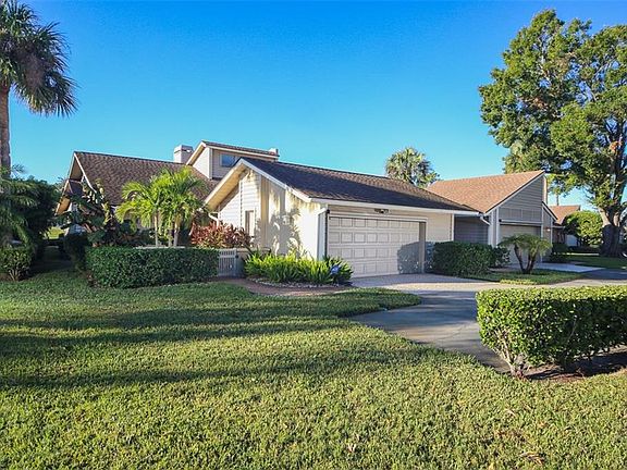 Extensive upgrades in this TURNKEY FURNISHED 2200+ Sq Ft villa with Quality finishes, 2-car Garage, Front Courtyard, IMG Golf Course 4th Fairway setting, and a short bike distance to IMG Academy campus. The Kitchen has dark wood cabinets, granite tops, tile backsplash, stainless steel appliances, decorative fixtures, breakfast bar as well as eat-in space. Master Bathroom also has the dark wood cabinets, granite tops, luxurious tile walk in shower and bath surround, as well as decorative appointments. Great room has dry bar with granite top, wine cooler and dry bottle storage, as well as stone decorative fireplace. Entire villa has beautiful laminate flooring, with exception of wet areas, which are upgraded ceramic tile. Vaulted ceilings and large spaces provide abundance of natural sunlight. The Florida room offers golf course views and another area to relax or use as a game room with billiards and or ping pong tables. Enjoy outdoor living space on the back patio or the front courtyard. Walk just across the street to the community pool. Take nice walks in this popular neighborhood, or take a short drive to the area beaches or shopping. This is turnkey and ready to move in. At the time of this listing going Active, this is the ONLY villa available in Turnberry Woods, and one of only two renovated 3 bedroom villas, over 2000 SF, in the entire zip code!