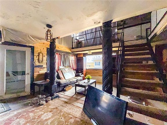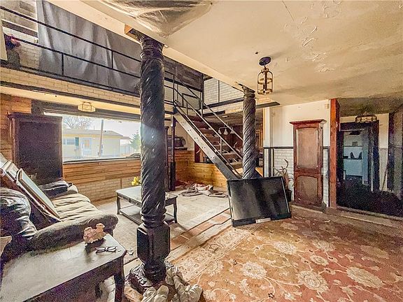 Great investment opportunity! The home includes an upper-level primary bedroom with deck access, multiple living areas, and flexible spaces that could serve as additional bedrooms or an office. Sold As-Is.