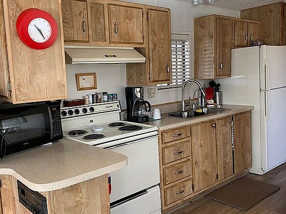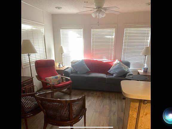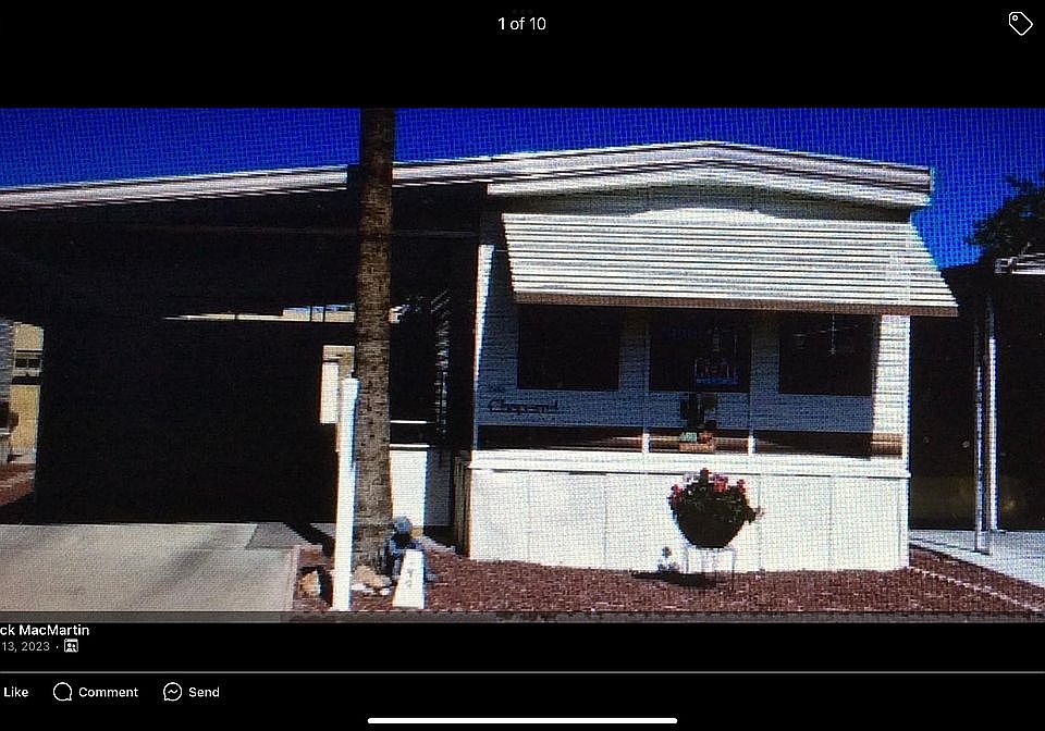 1988 Chaparral - Unit 149 – Located on North Wall, South Facing Pad Fee Cost (due April 15st, 2024). Possession date - to be negotiated Light, Bright, Sunny all day, Beautiful Sunset Views from Living Room Very well maintained and clean Extra Back Patio Space, furniture included, Very large driveway, large patio table, Seating for 6, plus extra chairs One bedroom (Queen bed), One bathroom (new toilet, new sink, faucet, cabinet, new flooring) Open Floor Plan Newer sofa bed in Living Room, New Waterproof Laminate flooring throughout Newer Custom Blinds throughout, side windows replaced Two Flat Screen TV’s, Ceiling Fan Shaw Direct, Satellite dish included All furniture included New Roof Sealent (2 years old) Shed at the back Close Proxi Close Proximity to Dog Park mity to Washer/Dryer Close Proximity to Pickleball, Bocce Ball Courts