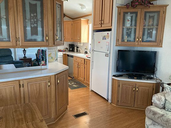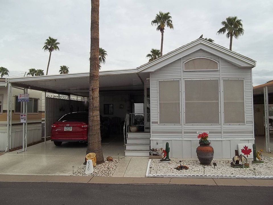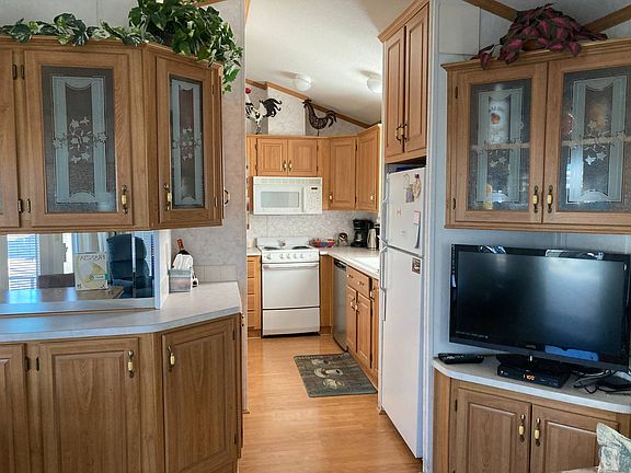 Close to Center! Close to Laundry, Vaulted Ceilings, Galley Kitchen, Extra Beverage Fridge, China Hutch, Laminate Floors, Bay Window, Built in Microwave, Ceiling Fans, Sofa Sleeper, Recliners, Flat Screen TV, Blinds, Outdoor Living Area! Enclosed Carport, Painted Carport! Shed, Newer Roof & Awning, Lift n Store Queen Bed, Central A/C & Heat.