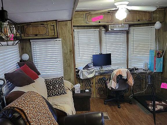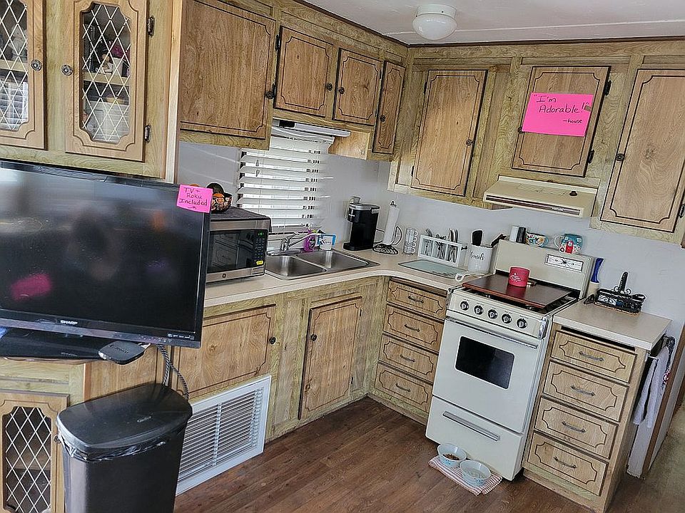 55+ Resort Lifestyle Mobile Home Park! 1984 Yellowstone trailer, furnished, w/Shed, East-Facing, Open Kitchen w/Gas Stove and Oven, Dishwasher, Queen Bedroom w/ Lots of Storage and Stacking Washer/Dryer. A/C is 6yrs and works wonderfully! Must qualify for park. Cute, fixer upper-Oldie but goodie! Park rent is $8500 a year, paid up through October, 2023.