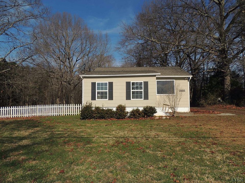 Cute bungalow in Campbell County on 1 acre with a large fenced back yard, shed, and 2 driveways conveniently located off of 501. This 2 bedroom, 1 bath home has recently been painted, new HVAC, and well pumps in 2019. The eat in kitchen has some updated appliances; refrigerator (2018), range (2016), microwave (2016), and some updated wiring and hardwood floors in living room and bedrooms. Sunroom and laundry room are not headed and are not included in the finished square feet. Gas is not hooked to gas heater in hallway. Some newer windows and roof (seller thinks around 2013).