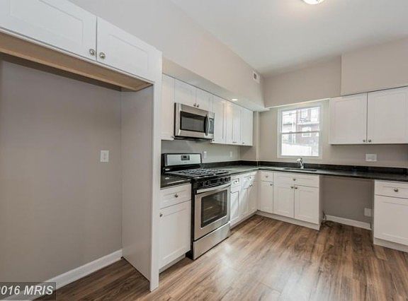 Updated to the nines, this is city living at its finest! Stunning interior upgrades such as bright light wood flooring, new carpeting in the upper level bdrms, gorgeous sparkling granite cntrs & SS appli. Large bdrms & freshly renovated bthrms. Large patio w/ parking potential! A short distance to Patterson Park & commuter routes. You can't beat this price! 10K seller credit thru Vacants to Value.