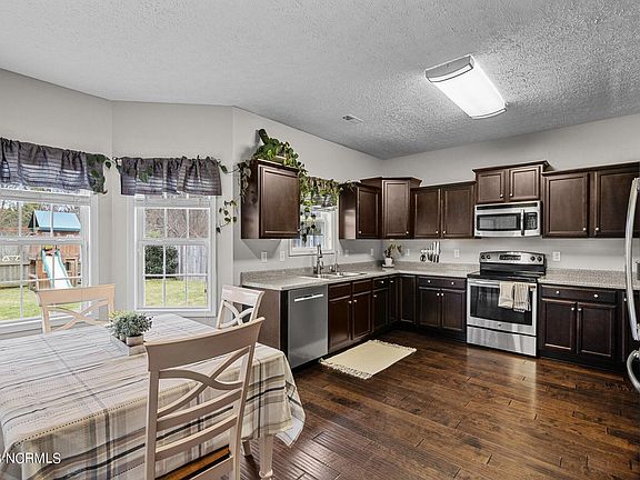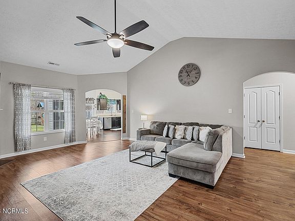 If the condition of the home and its location is important to you, then look no further! This is a very well-maintained, one owner, split floor plan with luxury plank vinyl flooring throughout the entire home with the exception of tile in the laundry and bathrooms and engineered wood in the kitchen and dining area. Whether stuck inside because of the cold or you're spending time outside because it's delightfully warm, you're covered! Curl up with your favorite book or movie in the centrally located family room with the natural gas ventless fireplace on - the perfect thing to ensure you're kept toasty! Perhaps you'd rather enjoy the weather on your covered rear porch (it would be a cinch to screen in!) or out tending to flowers and vegetables in your raised beds? Either way, this house will quickly become home! Several of the additional amenities include: a wooden privacy fence in the backyard; a Rinnai natural gas water heater; 2-1/2'' vinyl blinds; motion sensor lights in the bathrooms and walk-in-closets; AND a whole house Kinetico water softening system and reverse osmosis system! As for the location, you are equidistant to downtown New Bern in one direction and in the other, to the back gate at MCAS Cherry Point - only a 15 minute drive (approximately)! Hardee Farms is a very desirable neighborhood and so, the houses don't last long here! Call today for a private showing!