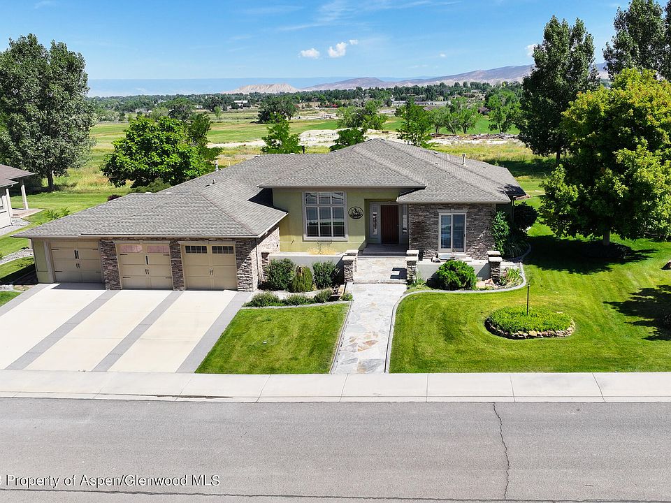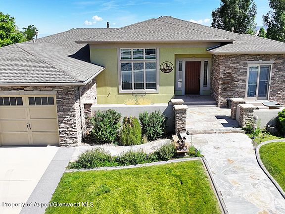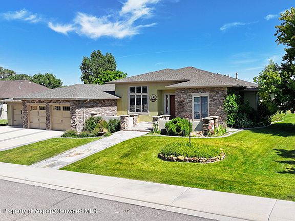 Western Colorado luxury home designed in elegant beauty with high end features inside and out. Stone walkway leads to an entry way with pillars and walls surrounding a patio. Step into a living/dining area with rock fireplace, built in entertainment center and china hutch. A chef's kitchen offers granite counters, breakfast bar, state of the art appliances, island, and alder wood cabinets. Master bedroom with bidet, double vanity, jet tub, walk in shower and closet/dressing area. 2 spacious bedrooms with walk in closets and Jack and Jill full bath. 4th bedroom used as an office or exercise room. Large laundry room with sink, counter, cupboards. Oversized 3 car garage. Gorgeous hickory wood flooring, carpet and tile throughout the home. Recessed lighting, unique light fixtures, large windows, central ac and more. Enjoy family time on the covered back patio with landscaped yard and views. In Montrose, aka the gateway to recreation in every direction.