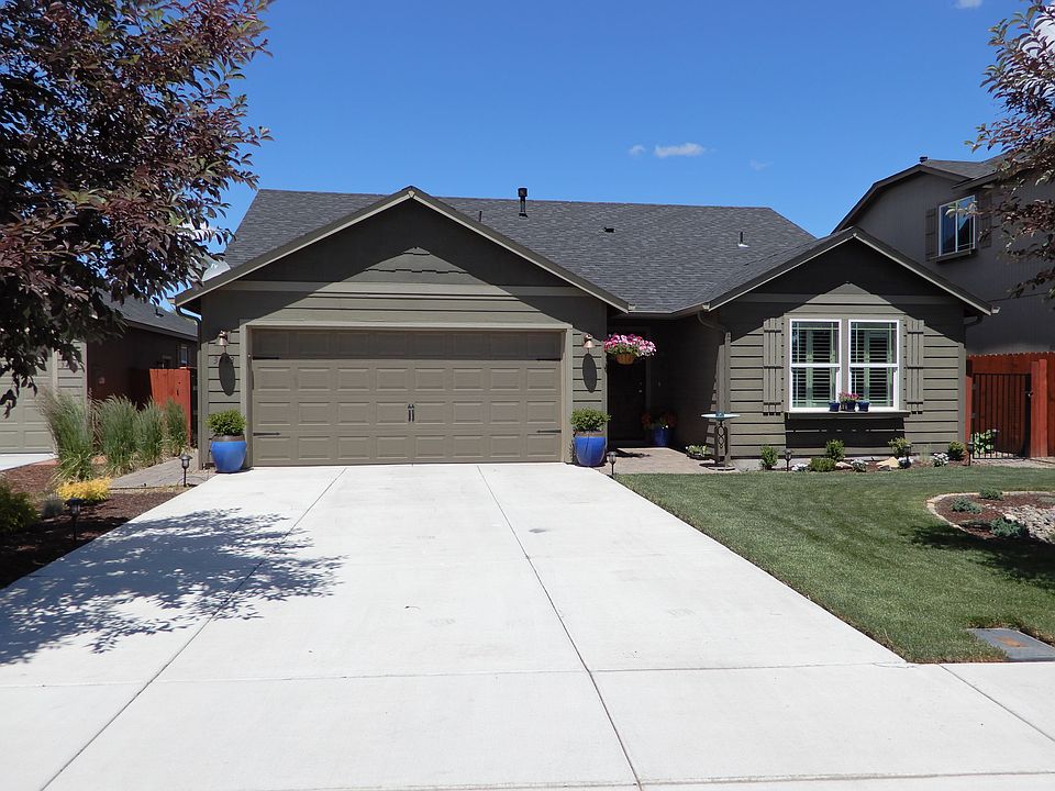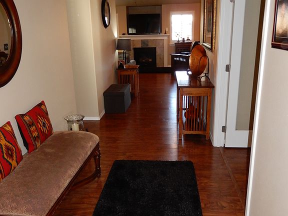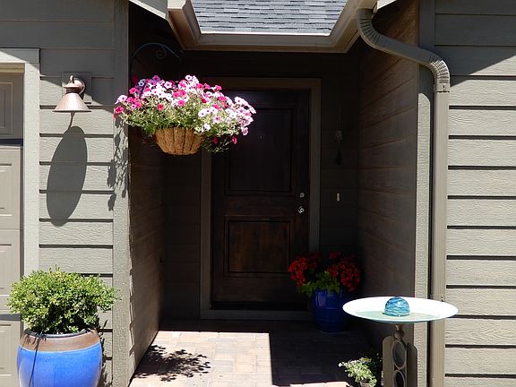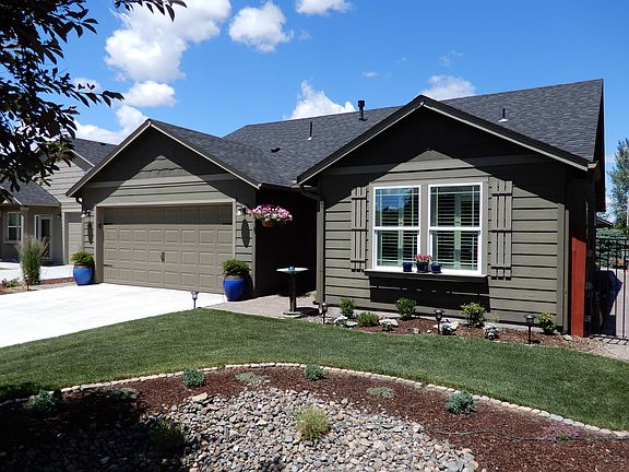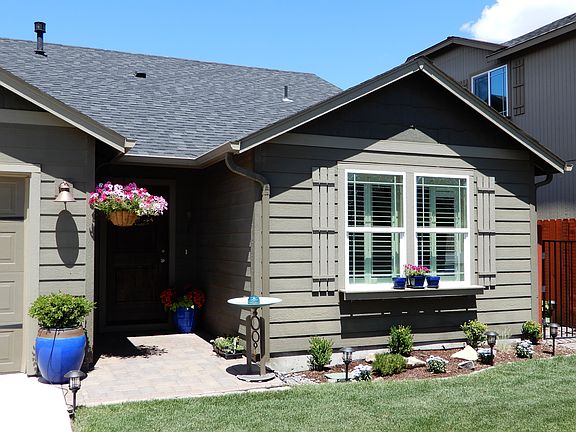 Move-in-Ready! 3 bedroom, 2 bath, single-level home w/air conditioning, gas fireplace in great room & vaulted ceilings in master bedroom, has been meticulously cared for by the original owner with $38K new updates. Beautiful interior finishes include granite kitchen counter-tops & breakfast bar, no skimping with quality laminate flooring, bathrooms with ceramic tile flooring, raised vanities, master bath double-sinks & enclosed toilet, tiled walk-in shower with modern accents, glass enclosed shower in hallway bathroom, oil-rubbed bronze fixtures, ceiling fans in every room, white plantation shutters throughout, and solid wood, front door with covered entry. Relax in the backyard, rain or shine, with a covered patio & garden oasis including accent lighting, gas stone fire pit and gorgeous ground cover with magnolia, lavender, periwinkle, and mother of thyme; paver stone walkways throughout the property. Garage to store recreational gear. Great neighbors & close to schools
