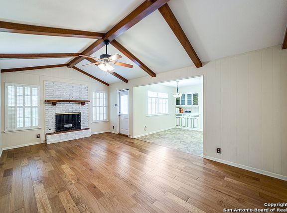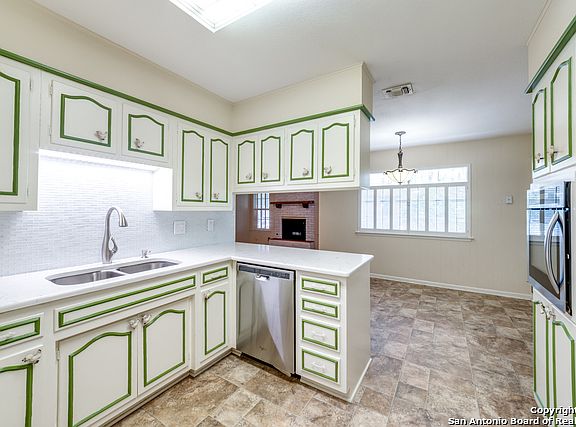 Welcome to this charming traditional home located on a corner lot for maximum yard space and within minutes to some of San Antonio's most noted attractions. This home boasts a formal sitting and dining room just off the entry. Soaring vaulted ceilings and a wood burning fireplace welcome you into the family room creating a warm and inviting feel. With seamless connection to the kitchen and breakfast nook, this living space is easily the heart of the home. The primary bedroom features an en suite with a stan