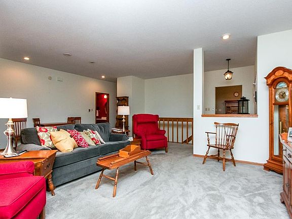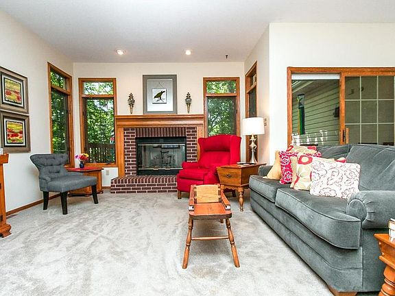 Beautiful ranch style condo with stunning wooded views. 3 spacious bedrooms, open floor plan with plenty of room to spread out your holiday table-bright. Eat in kitchen features great storage, garage access and large dining nook. Walkout lower level features a large family/rec room in addition to the third bedroom and full bath plus a huge storage room and shop. Two car attached garage plus deck & patio and access to the 2 mile Riverbend nature trail.