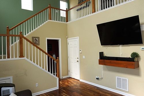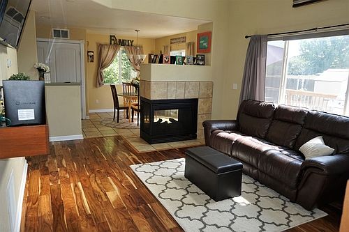 Beautiful and spacious 3 bedroom home on a corner lot. Home has vaulted ceilings and lot of natural light throughout. Kitchen opens to living room. Main level has hardwood floors and a 2 sided fireplace. All bedrooms are upstairs. Master bath has granite counter tops. Backyard features a beautiful deck and is completely fenced in. Walking distance to parks and trails!